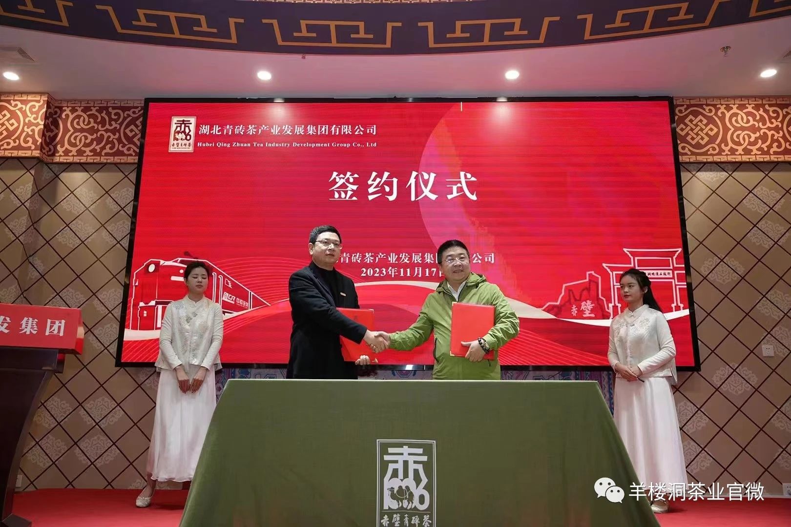 赤壁青砖,茶香万里。11月17日,恰逢第十九届中国茶业经济年会、2023“一带一路”赤壁青砖茶产业发展大会召开之际,为答谢广大经销商,进一步拓宽赤壁青砖茶市场营销渠道,赤壁青砖茶全国经销商答谢晚宴暨采购商签约仪式在湖北青砖茶产业发展集团羊楼洞茶文化生态产业园隆重举行。