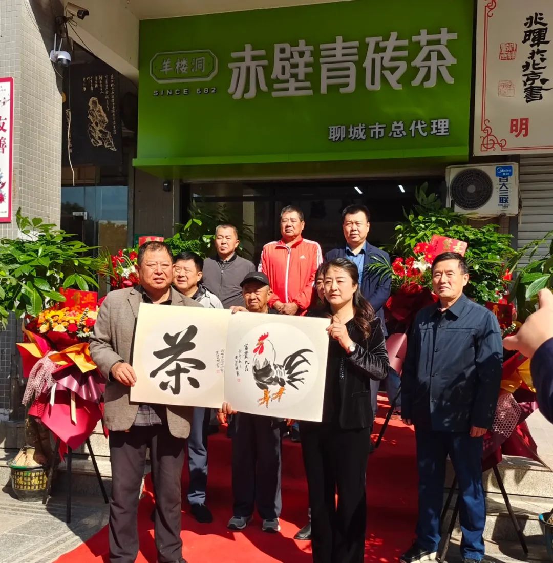 锣鼓喧天,盛大开业。10月21日上午11点17分,经过一系列精心的布置调整,赤壁青砖茶山东省聊城市总代理店正式开业。原聊城市政协党组副书记、副主席王广柱同志,原聊城市文化旅游局局长刘光辉同志,聊城茶叶协会李乃辉会长,黄贤明副会长以及刘兆伟秘书长受邀出席开业典礼。