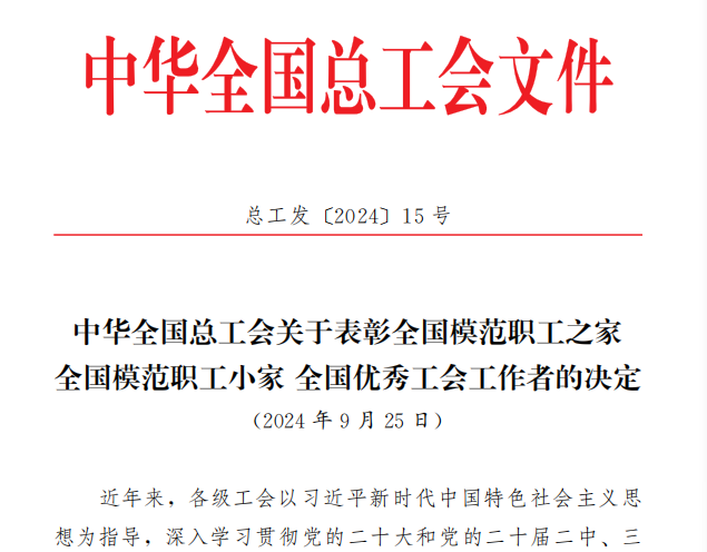 近日,中华全国总工会下发了《关于表彰全国模范职工之家 全国模范职工小家 全国优秀工会工作者的决定》,湖北茶发集团旗下羊楼洞茶业股份有限公司(以下简称“羊楼洞茶业”)工会委员会被授予“全国模范职工之家”荣誉称号。